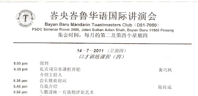 Visiting Bayan Baru Mandarin Toastmasters Club, Penang Island - July 14, 2011